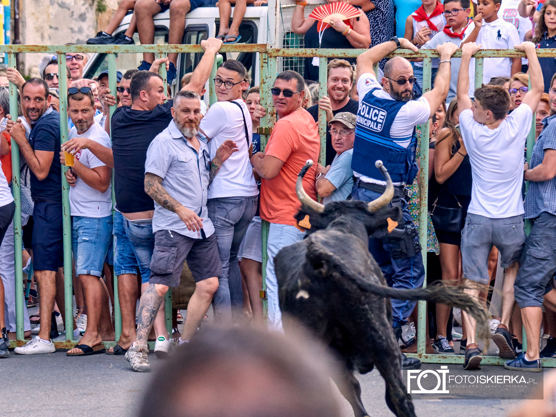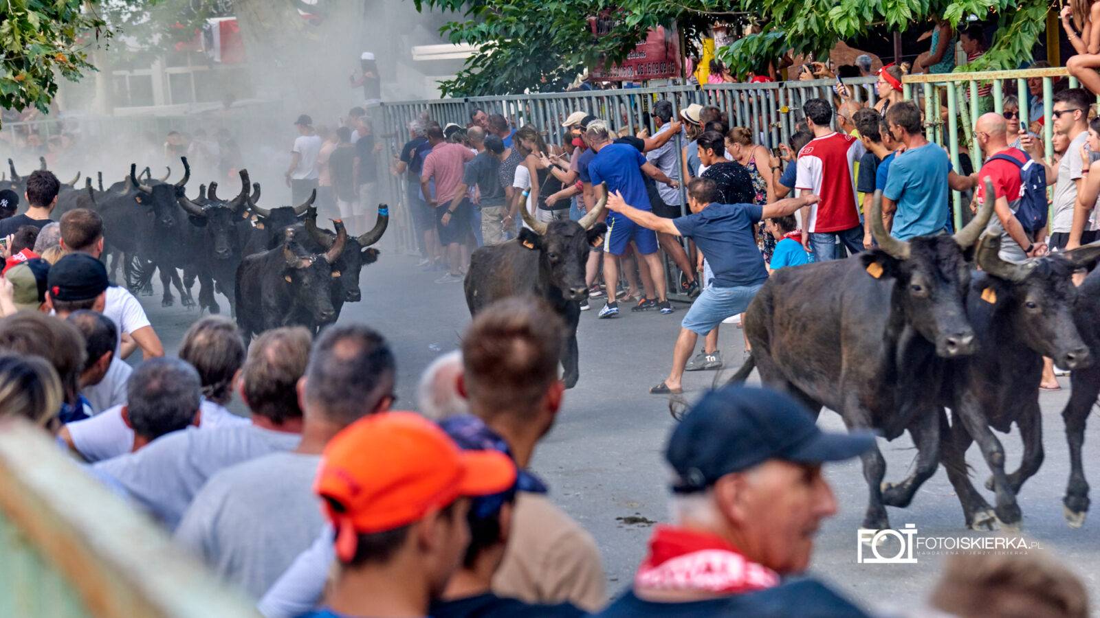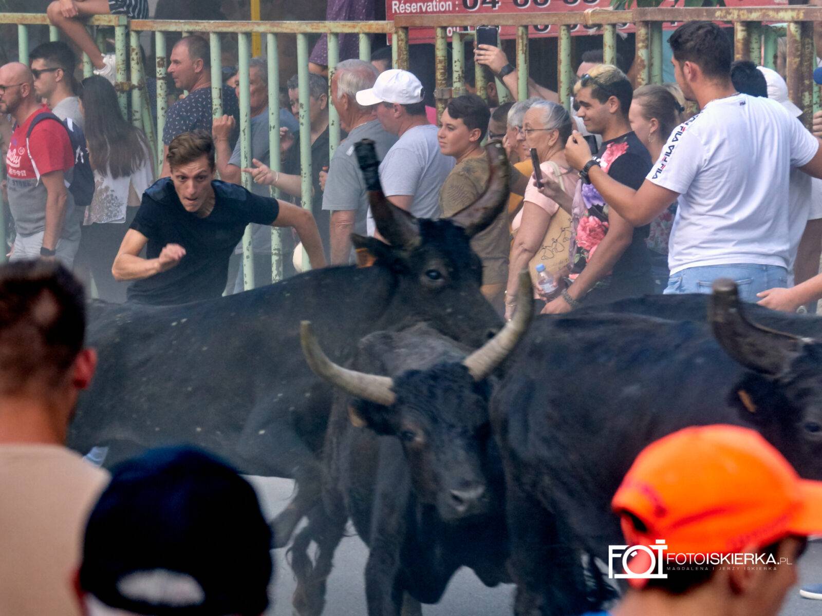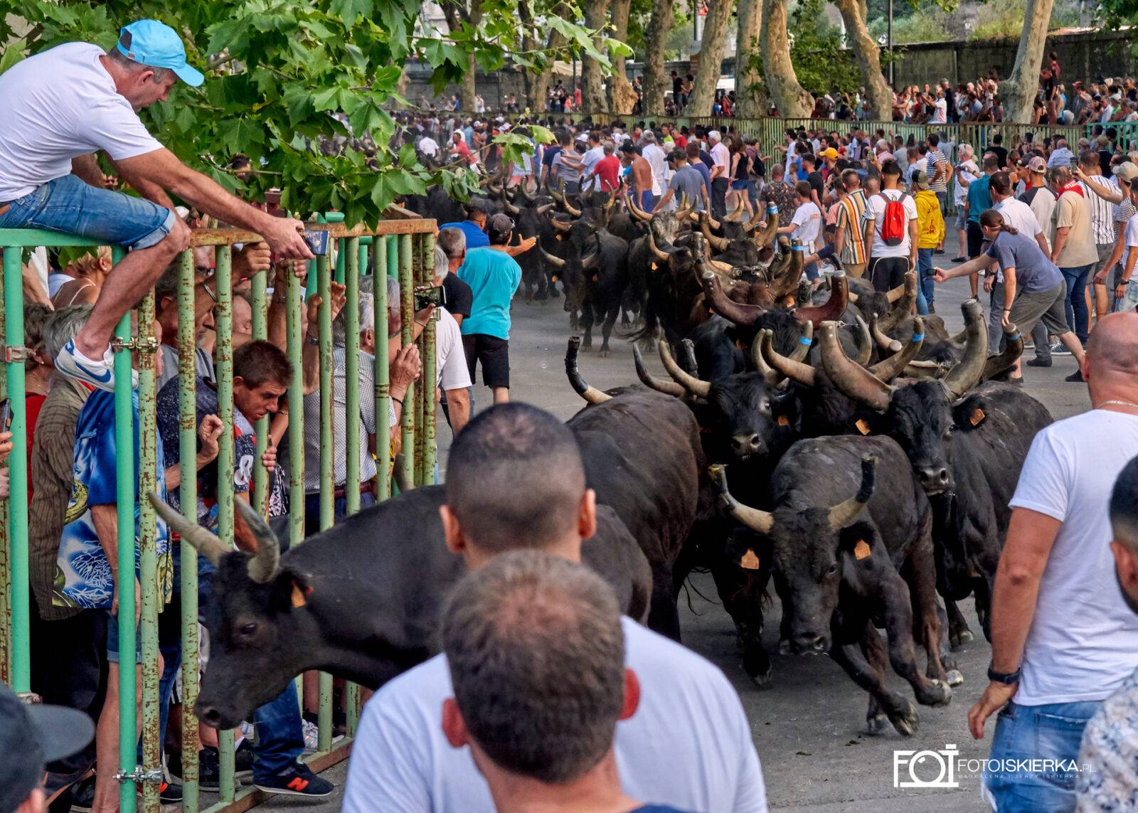 Byki przeganiane ulicami Beaucaire w Prowansji we Francji